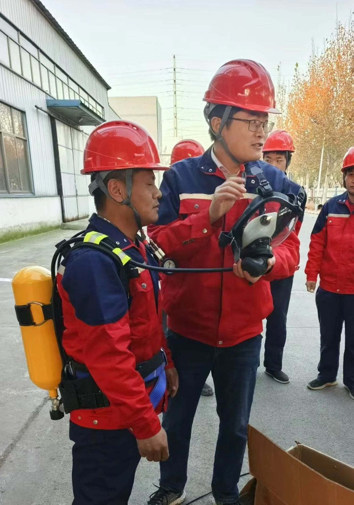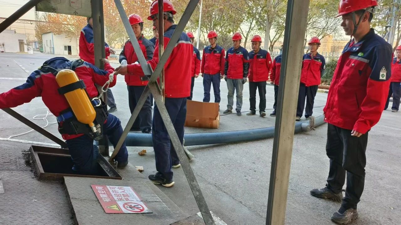 此次现场演练由安全员田立志事先准备好相关物资,并书写演习方案;生产经理姜继光负责统筹安排演习时间,在演习前三天告知相关参与人员,并将现场演练情况及不足告知总经理;赵大海负责维护现场秩序,对演练人员进行签到记录,李学松对演练过程进行拍照;田立志对《有限空间事故专项应急预案》、演练方案、情景模拟、安全事项、上报流程、救助细节、防护用品佩戴等进行详细讲解。